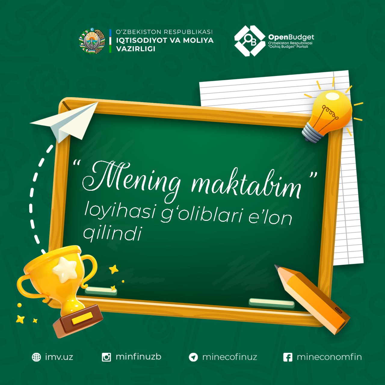 💻“Mening maktabim” loyihasi g‘oliblari e’lon qilindi